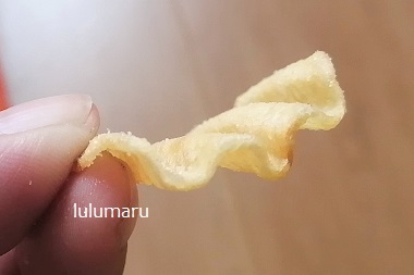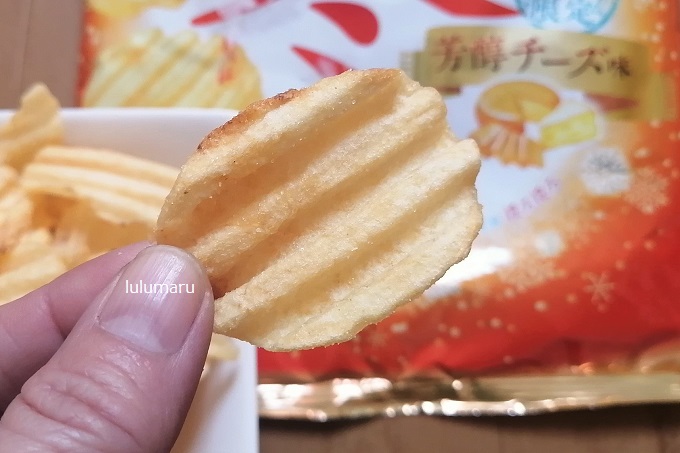 ギザギザ幅の大きいポテチで、チーズの香りがします。