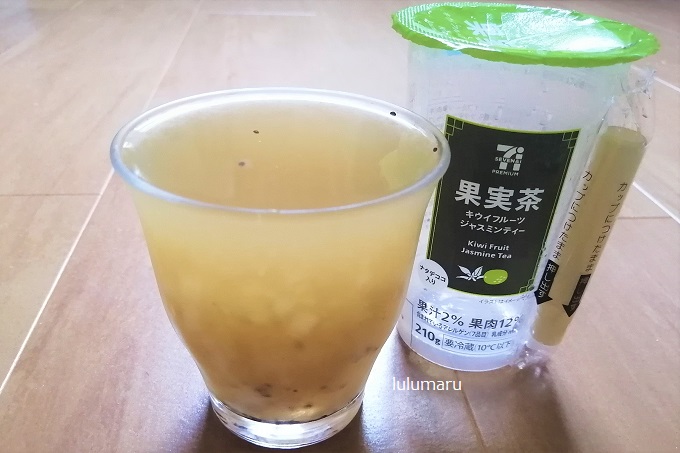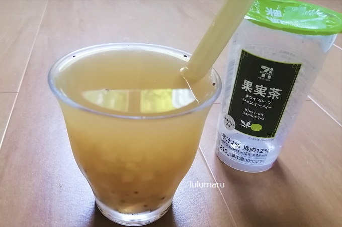 今回は、セブン-イレブンなどで販売されている セブンプレミアム【果実茶 キウイフルーツジャスミンティー 210g】を飲んだ感想・口コミレビューを、私・るるまる(40代女性)がしていきたいと思います。