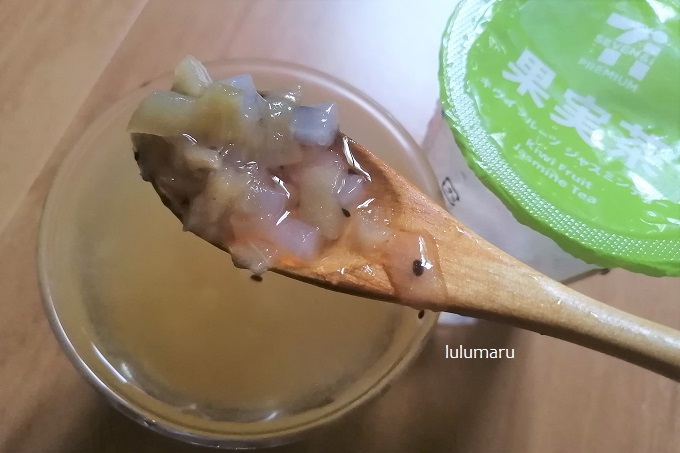 食感はよくて楽しめました。とくにキウイの種が噛むとプチプチっとして、風味が広がって美味しかったです。