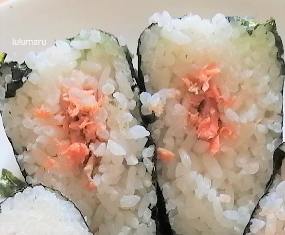 実は、ローソンとファミリーマートの紅鮭おにぎりと比較してみるために食べたのですが、本当に少なくて、ちょっと残念なくらいでした…。