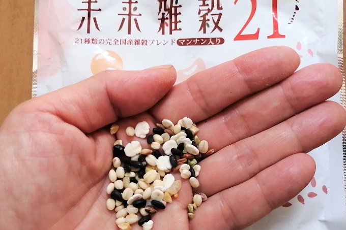 少し手に取っただけでもいろんな種類の雑穀が入っていることがわかります。