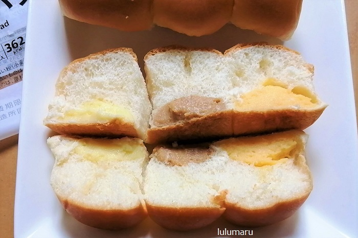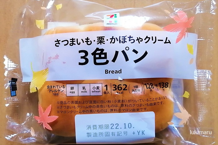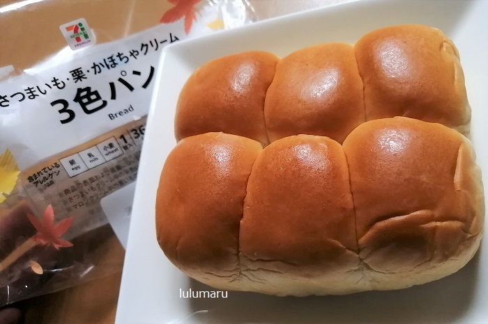 以前は「つぶあん・カスタードクリーム・チョコクリーム」の3色パンが販売されていましたが、秋バージョン味ですね。