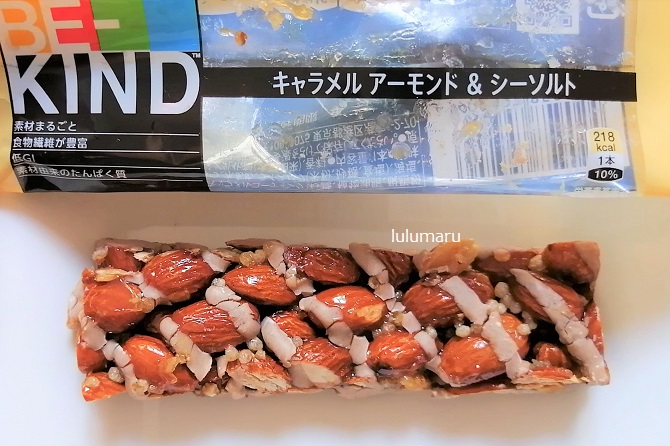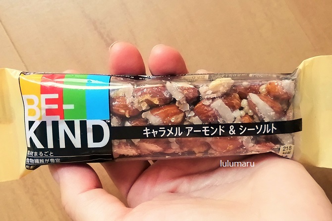 今回は、BE-KINDのカラダよろこぶナッツバー【キャラメル アーモンド & シーソルト】を食べた感想・口コミレビューを、私・るるまる(40代女性)がしていきたいと思います。