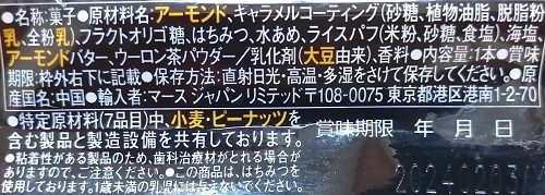 ちょっとほかのバータイプのお菓子に比べて高級感のあるパッケージと、価格(税込246円)。