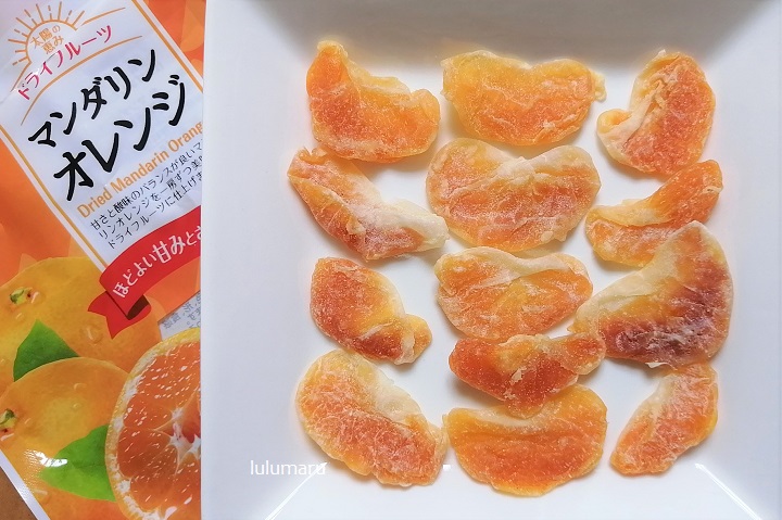 今回は、100円ショップダイソーで販売されているおやつ【ドライフルーツ マンダリン】を食べた感想・口コミレビューを、私・るるまる(40代女性)がしたいと思います。