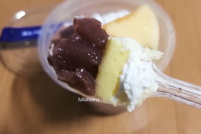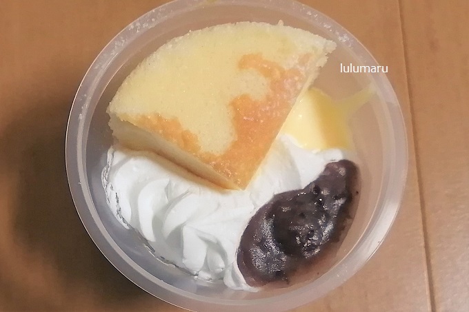 「Patisserie Terrace」となっているけど、ドンレミーがつくっていますね。で、ドンレミーの【CUP DE あんバター 北海道小豆使用】という名前で販売されているのと同じもののようです。