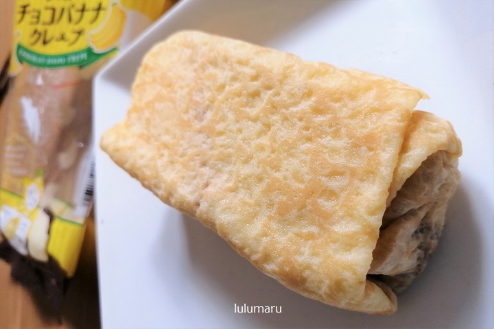 うす焼き卵っぽいクレープ生地にチョコホイップクリームとバナナが包まれています。