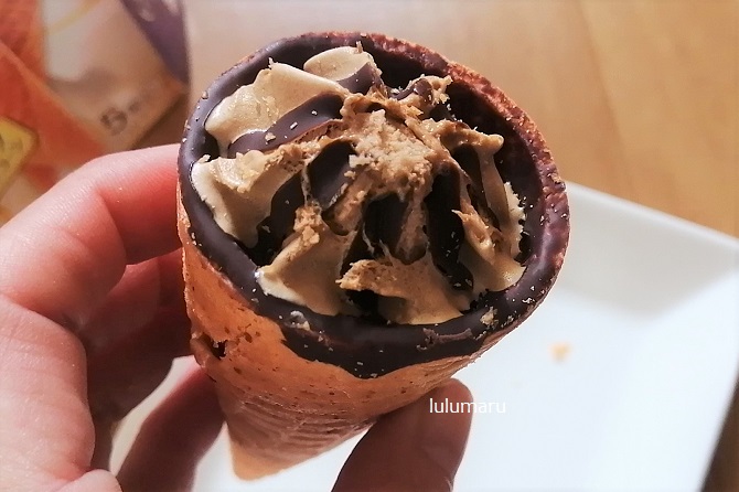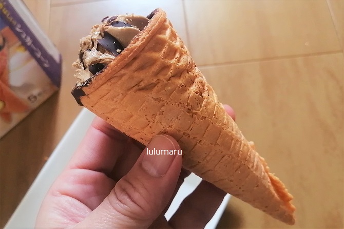コーンの内側はちゃんとチョココーティングがされていて、サクッとした食感でした。
