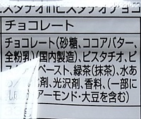 チョコレート(砂糖、ココアバター、全粉乳)(国内製造)、ピスタチオ、ピスタチオペースト、緑茶(抹茶)、水あめ/