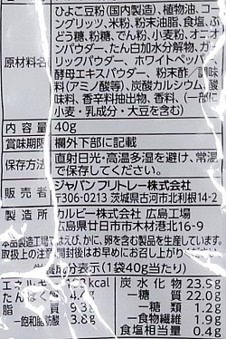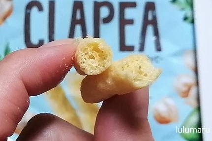味はひよこ豆っぽい味よりもちょっと「とんがりコーン」っぽい味がするなと思っていたら、コーングリッツが入っていたので納得。