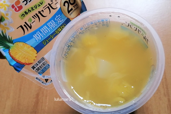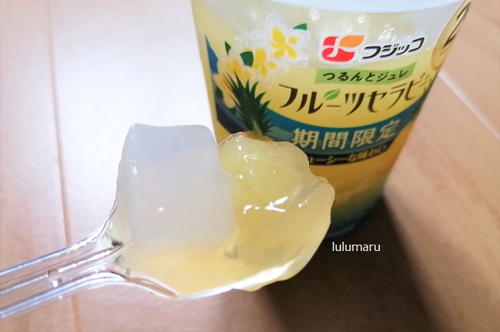 ゼリーはパイナップルの味がちゃんとして、果肉も入っています。
