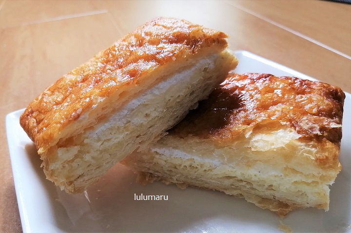 これならパイ生地じゃなくて普通にパン生地で販売してほしいな、と思いました。パイ生地食べないようにしてる私が抵抗感なく買えるから、という超勝手な意見ですけど。笑