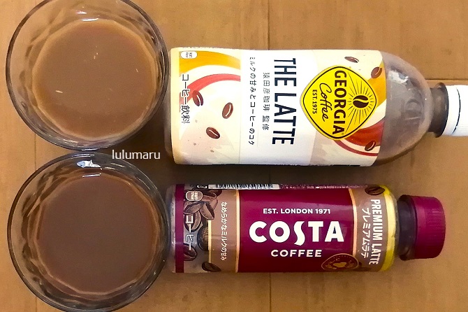 コカ・コーラ社のカフェラテ【ジョージア ザ ラテ】と【コスタコーヒー プレミアムラテ】を実際に飲んで比べてみた感想・口コミレビューを書いていきます。