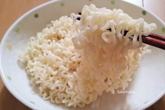 こんな感じで全体に水分が吸収されて、麺が折れないようになったらOK!