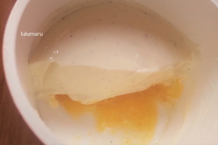 でも今回のは「オレンジピール入りソース」が入っているとのことで、これなら酸味の強かったヨーグルトとも合うかも!と思って購入してきました。