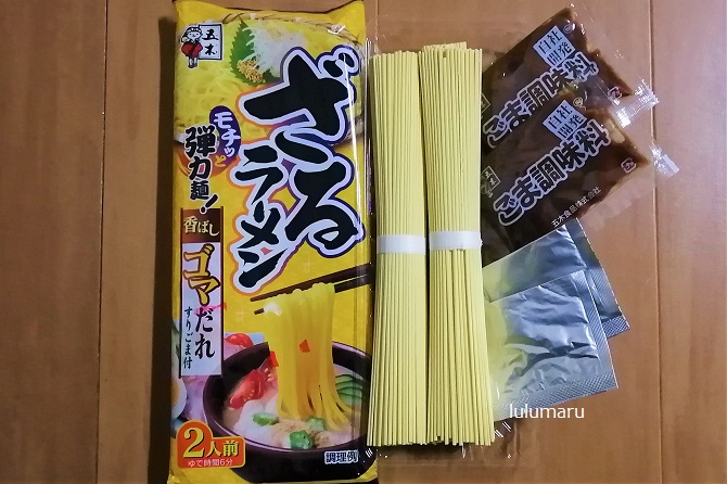 今回は、五木食品【ざるラーメン 香ばしゴマだれ味 すりごま付】をつくって、食べた感想・口コミレビューを、私・るるまる(40代女性)がしたいと思います。