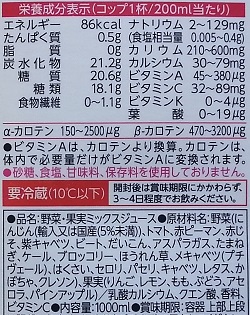 20種類の野菜汁60%+6種類の果汁40%=100%