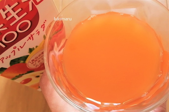 レモンぽい酸味がけっこう感じられる、さっぱりとした「にんじんりんごジュース」という感じで美味しかったです。