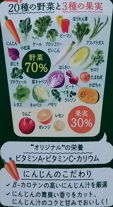 20種類の野菜汁70%+3種類の果汁30%=100%