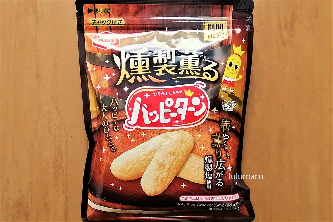 今回は、亀田製菓【燻製薫るハッピーターン】を食べた感想・口コミレビューを、私・るるまる(40代女性)がしていきたいと思います。