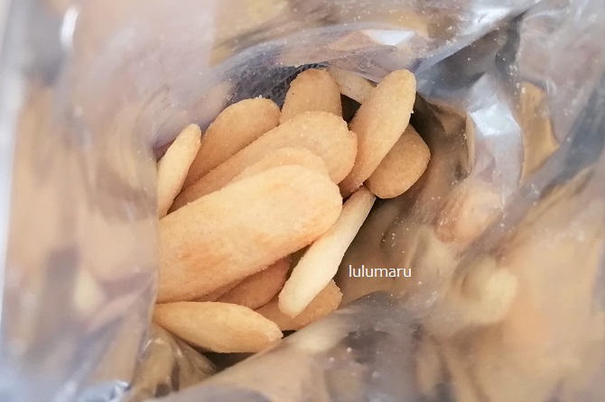 写真のように、個別包装してない状態のハッピーターンが袋の中に入っています。