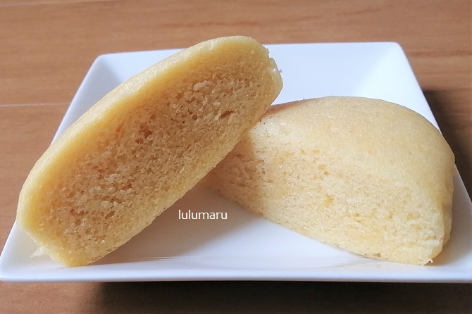 パクっとかじりながら食べてると軽い食感であっという間に1個食べちゃうので、私は上の写真のようにカットしてから食べるようにしています。