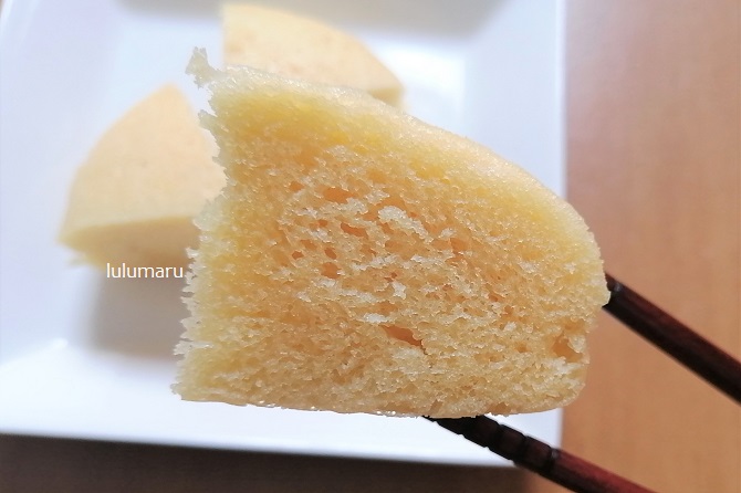 食べてみると、ほかの「木村屋総本店 むしケーキ」と同じく、いつもどおりのふんわりとしていて口どけがよいです。