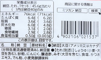 納豆1パック:納豆40g、たれ5.6g の3個セットです。