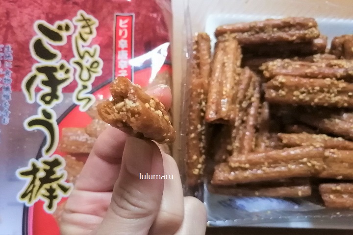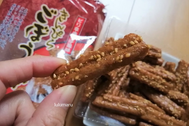 甘いのと辛いのと、ごぼうとごまの風味、カリッとサクッとした意外と軽い食感。