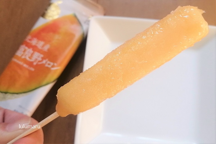 メロン果汁が30%使用されているので、通常の氷菓よりもやわらかいんでしょうね。食べてみた感じもきめ細かなシャーベットアイスのようでした。