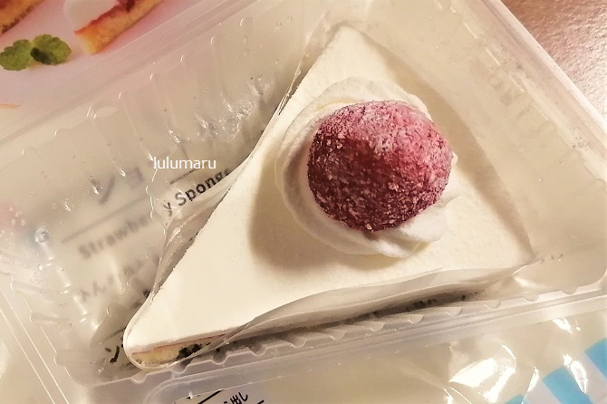レンジで10秒あたためてもいちごは凍ってる感じですが、ケーキはやわらかくなってました。
