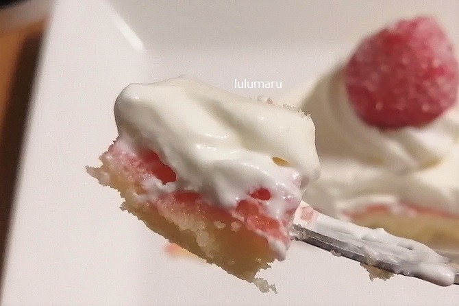 甘酸っぱいイチゴと甘めのケーキの相性がとても良かったです。