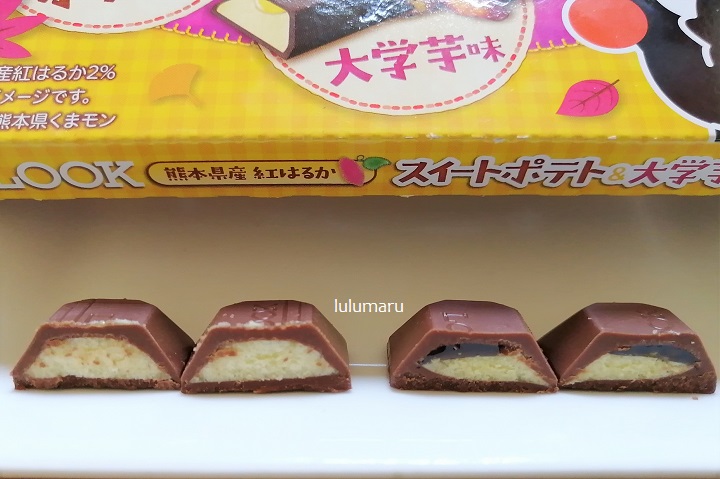 スイートポテト味には茶色い何かが入っていて、大学芋味には蜜が入っています。
