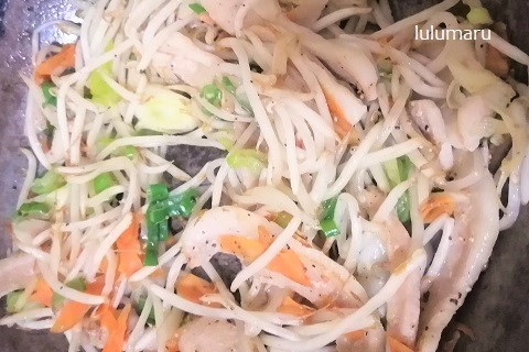 ・豚肉、にんじん、ねぎ、もやし、ブラックペッパー 適量