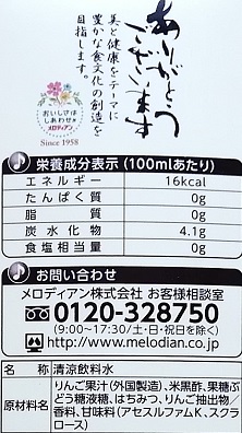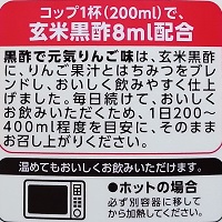 りんご果汁は10%未満、玄米黒酢は40mlなので4%になりますね。