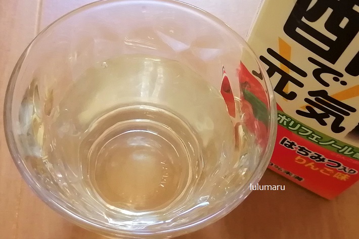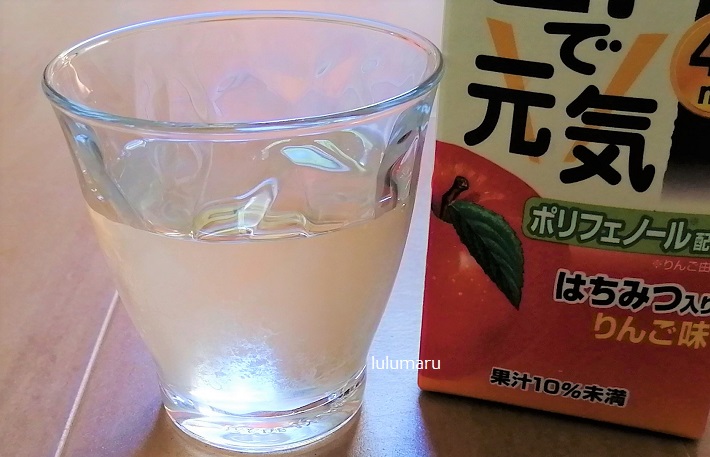 リンゴジュースをちょっと薄めた感じの味で、酸味がそれほどないので飲みやすい味です。