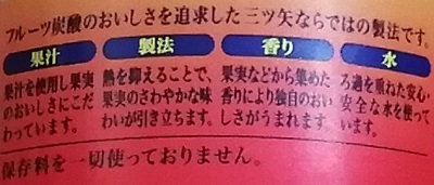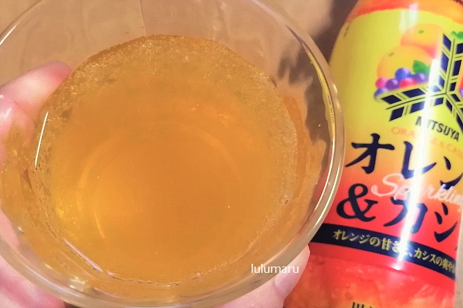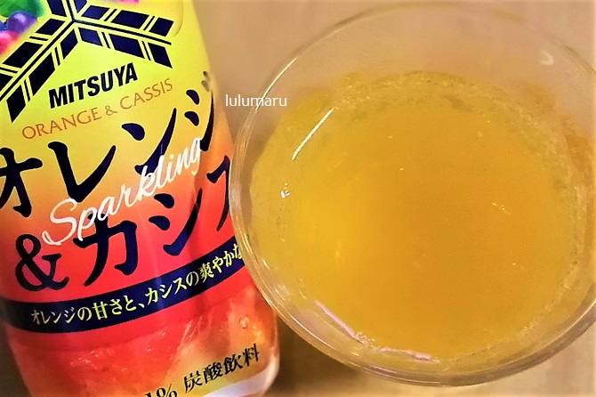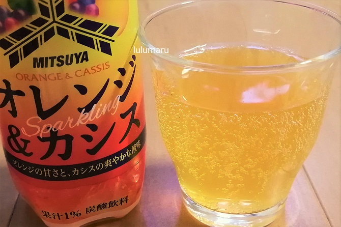 カシスはほんのりで、オレンジもそんなに強めじゃないけど、ベタベタな甘さじゃないし、香料もきつすぎないし、色も比較的自然な感じなので、ちょっと上品というか、大人の炭酸飲料という感じでした。