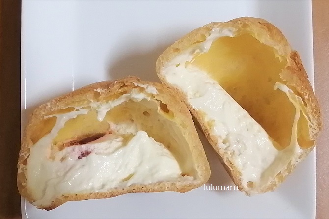 少ししっかりめのこんもり焼き上がったシュー生地でした。