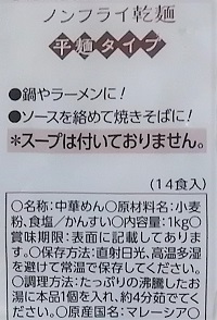 〆も業務スーパーで販売されていた【ノンフライ乾麺 平麺タイプ】を使いました。