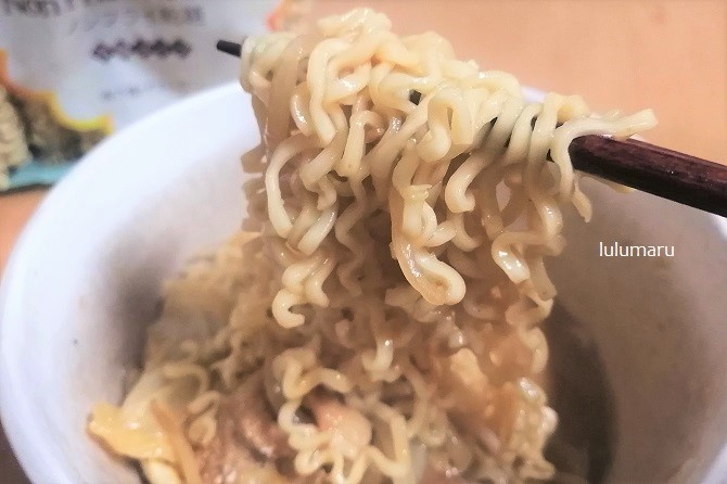 【ノンフライ乾麵】は直接鍋につっこんでゆでたら麺のつるっとした感じがなかったので、悪くはないけどそんなに美味しいとも思えなかったです。