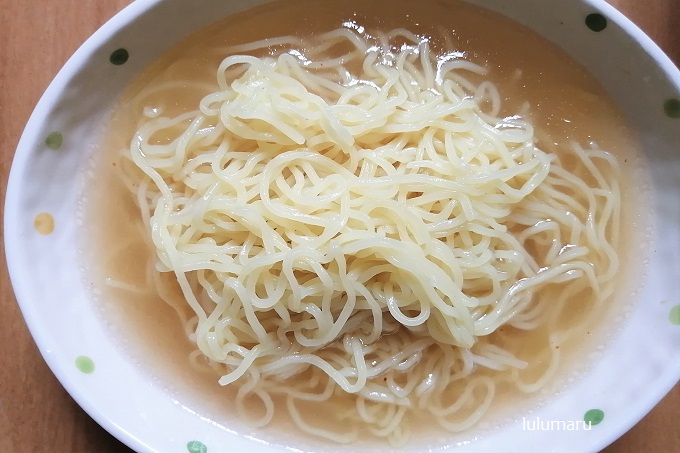 麺は細麺でツルっとしていて、冷やし中華の麺と同じ感じです。