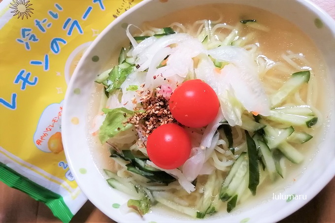 以前、日清の【冷たいトマトのラーメン】を食べて口コミレビューしましたが、今回は同じ種類の、日清【冷たいレモンのラーメン】をつくって、食べた感想・口コミレビューを、私・るるまる(40代女性)がしたいと思います。