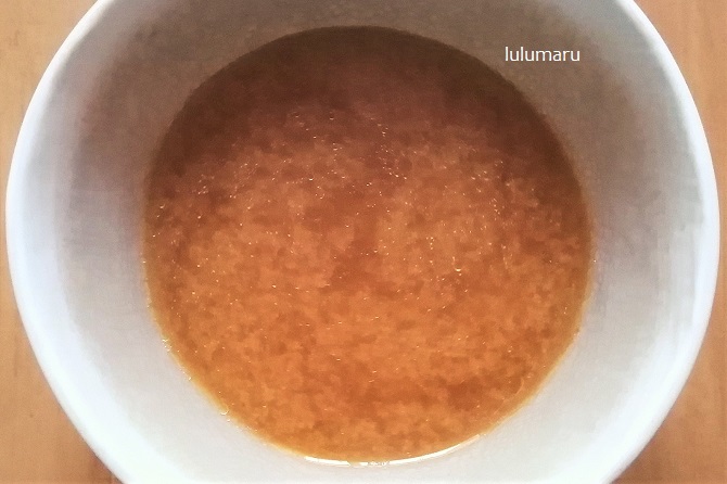 その間に液体スープをどんぶりに入れ、熱湯250mlを加えてよく混ぜ、スープを作ります。