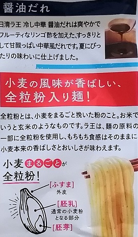 【ラ王 冷し中華 醤油だれ – 全粒粉入り麺】ノンフライ