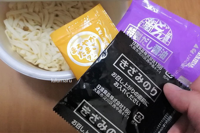 のびると美味しい麺も好きだし(基本的にインスタント麺はのびたのが好きです。笑)、このだししょうゆの風味も好きだし、「きざみのり」がついてるところもとてもいいですね!
