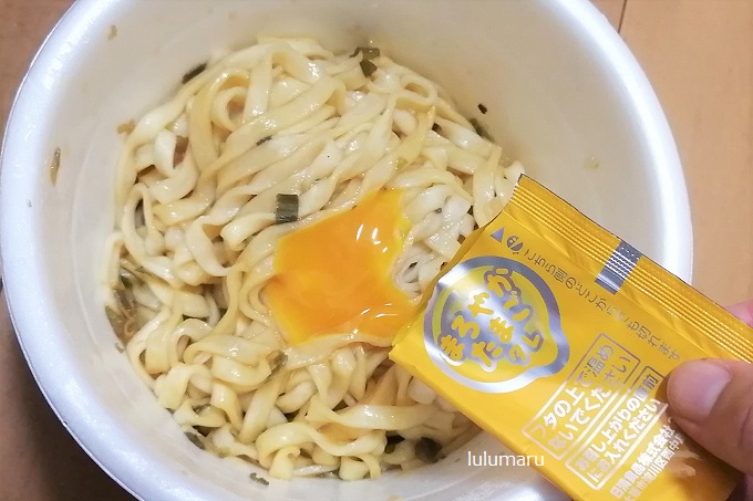 味も本当にちゃんと卵の味で、「だししょうゆ」がまろやかになり、しっかり麺に絡みます。