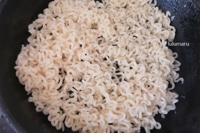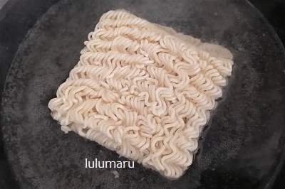 ① 400mlのお湯を沸かし、麺を約3分間ゆでたらお湯を切る。