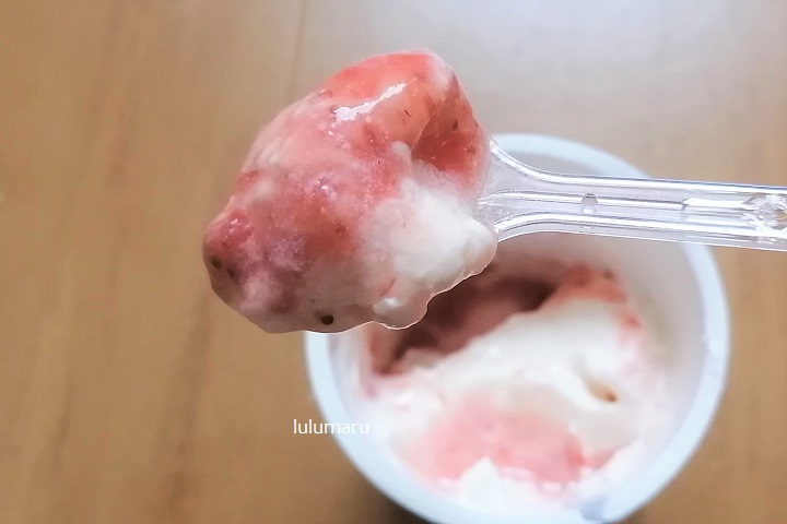 チーズケーキのような濃厚なヨーグルトと、苺ソースとの相性がとても良くて美味しかったです。