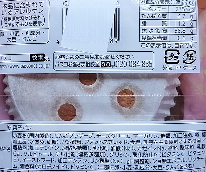 もうちょっと全体的に大きくて、チーズケーキ風クリームが多いとうれしいですが、りんごとチーズケーキ風クリームの相性もよく、パン生地も美味しかったので気に入りました!