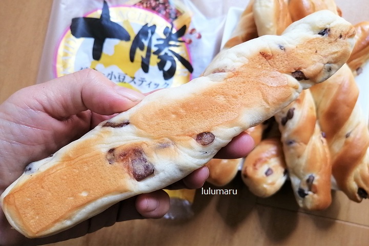 十勝産バターの風味豊かでやわらかなスティックパンに、バターと相性のよい小豆甘納豆を練り込みました。